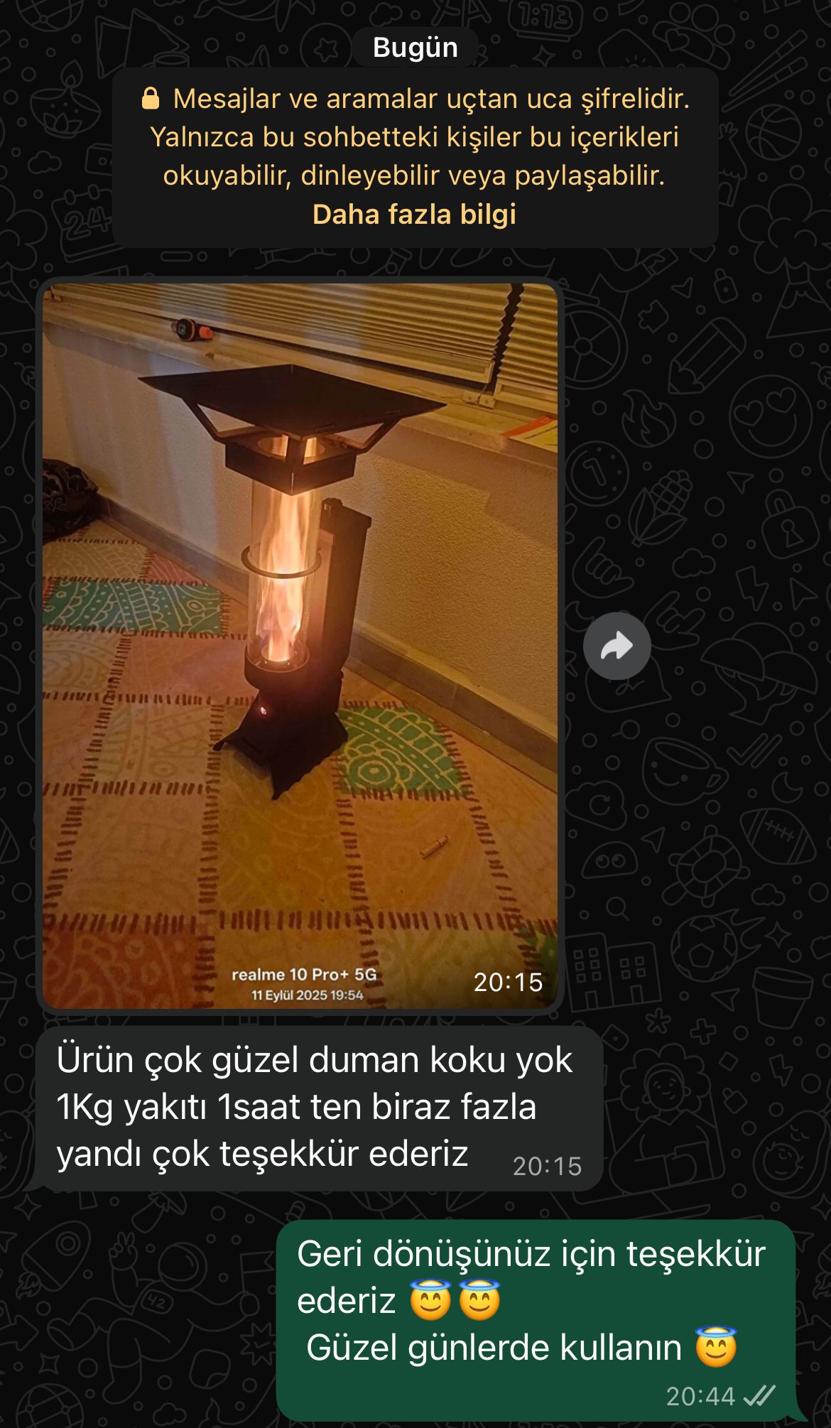 Hayır, ürün ısıya dayanıklı çelikten üretildiği için gövde kısmı yüksek ısıdan etkilenmez. Ancak üst tabla yanma sırasında oldukça sıcak hale gelir; direkt temas edilmemeli ve çocuklardan uzak tutulmalıdır. Uygun kullanımda çevreye zarar vermez.
