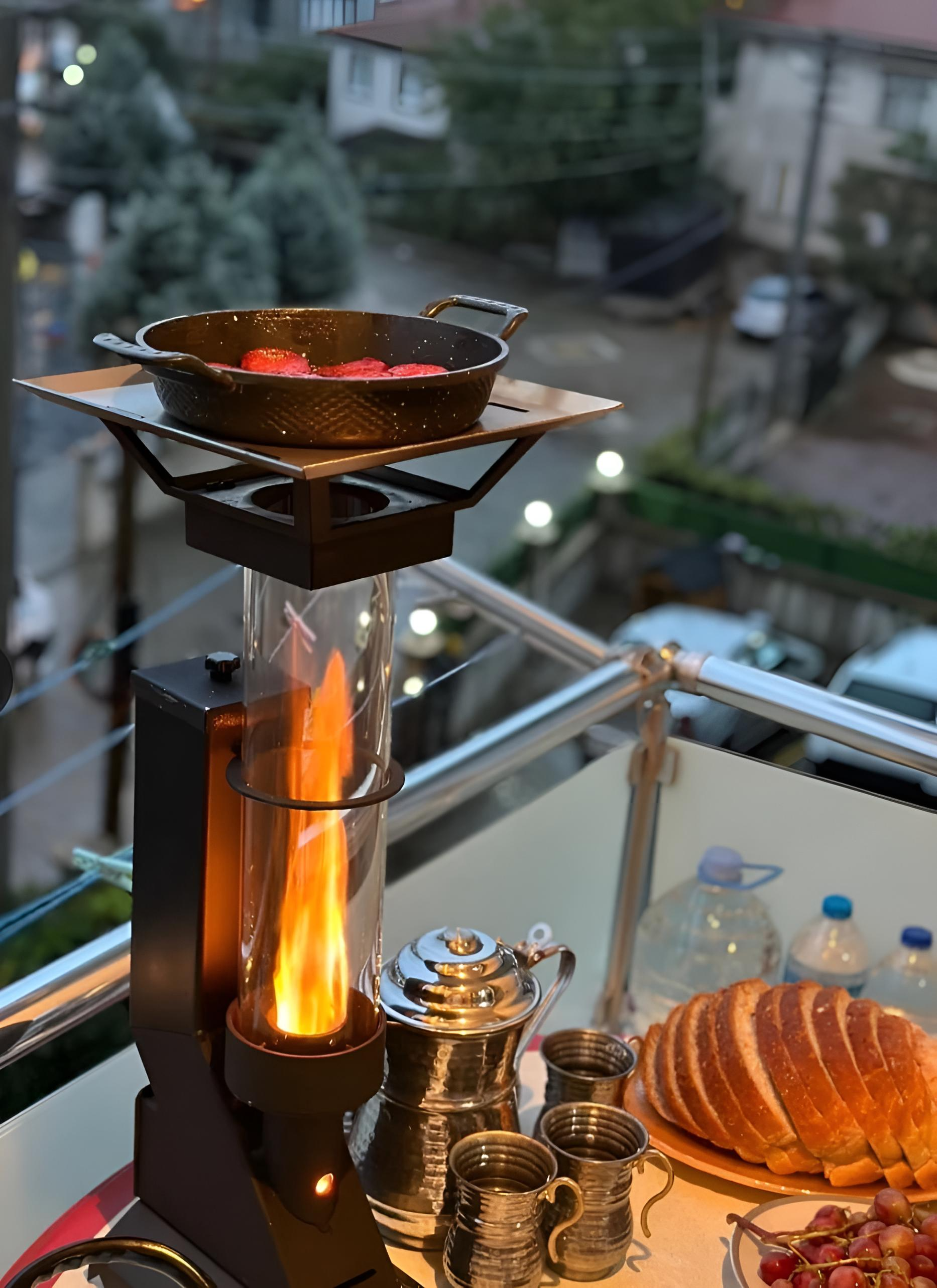 Ev, balkon, teras, kafe, kamp alanı veya doğada kullanmak için ideal bir ısı kaynağıdır. Hem sıcaklık hem dekor katar.